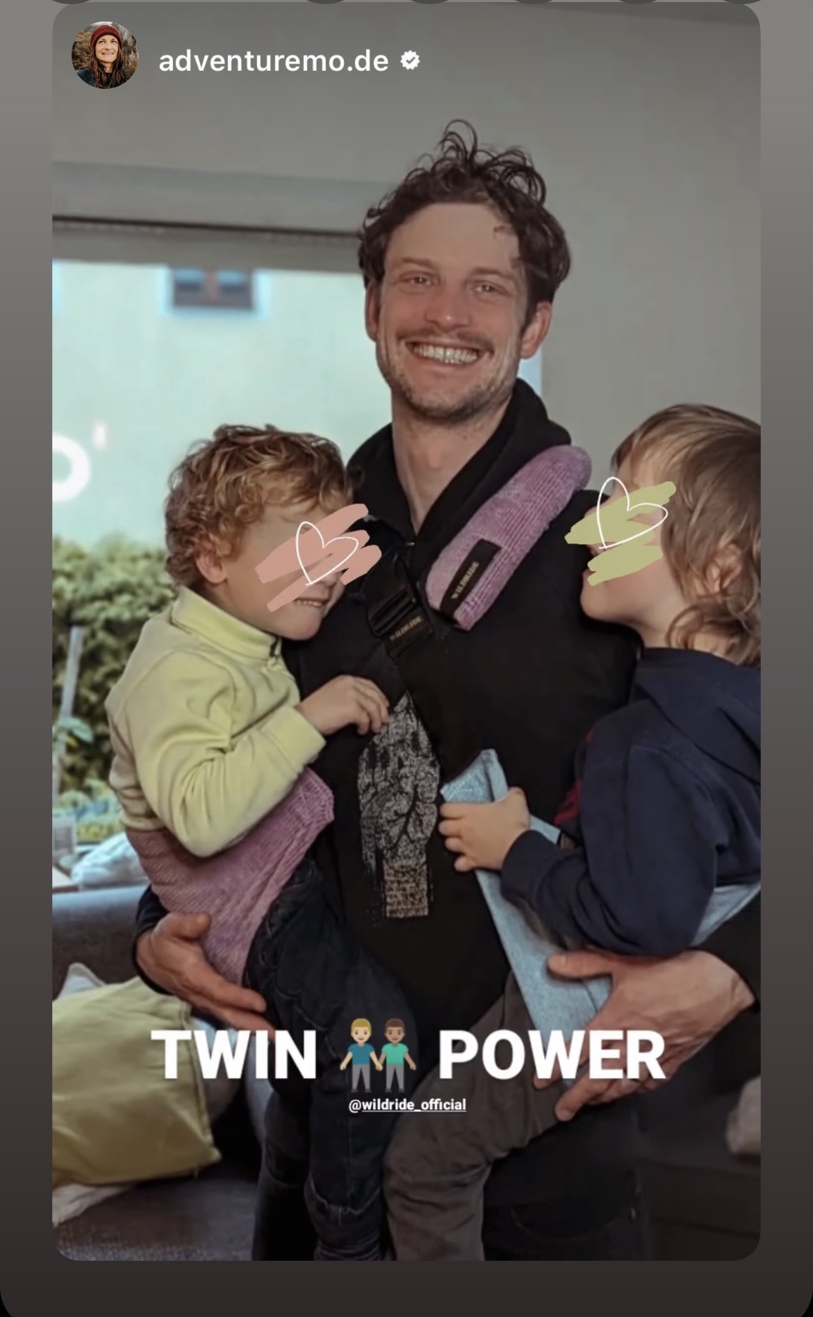 De draagzak is niet ontworpen voor een tweeling, maar je bent natuurlijk vrij om de drager te gebruiken zoals sommige andere moeders en vaders dat doen (zie foto). Ook horen we vaak dat ouders van een tweeling het prettig vinden als een van de twee kinderen moe word, terwijl de ander loopt.